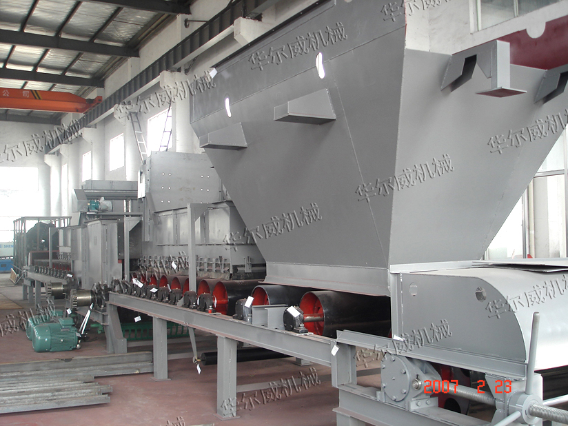 6.結(jié)構(gòu)合理:整體機架采用H型鋼,簡潔、大方、運行穩(wěn)定;驅(qū)動裝置采用硬齒面減速機+電機+聯(lián)軸器,導(dǎo)料槽采用防溢裙邊結(jié)構(gòu),避免了粉塵飛揚造成環(huán)境污染。